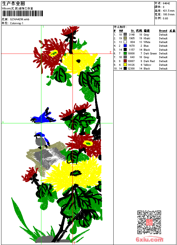 鸟语花香精品菊花传统 emb花版参数: 大小:370.00 KB / 尺寸:181*432[毫米] / 针数:64642针 / 线色:8 / 格式:emb / 版本:9 版带文件需绣花软件方可打开,可配色打印导出各种格式或直接上机绣。如无绣花软件可下载1:1模拟效果图。 PNG图片信息:大小:1.2(MB) /图宽*高:685x1633(像素) emb下载 1:1图下载 关闭 相关花版: 简单花 章仔 五角星月 小包针半圆裙 抽象吉祥传统 小女孩人物 双龙戏珠单针 镂空几何 童花 亮片 抽象单针条 经典花 水溶花 抽象单针 仿多色水溶花 镂空简单花 传统花 传统花领 小熊卡通 镜花 简单条 抽象花仿水溶 传统花 抽象锁针花 字母ORGIN 镂空花裙 简单花 抽象鸟花条 简单花传统 女孩卡通 单针抽象曲线