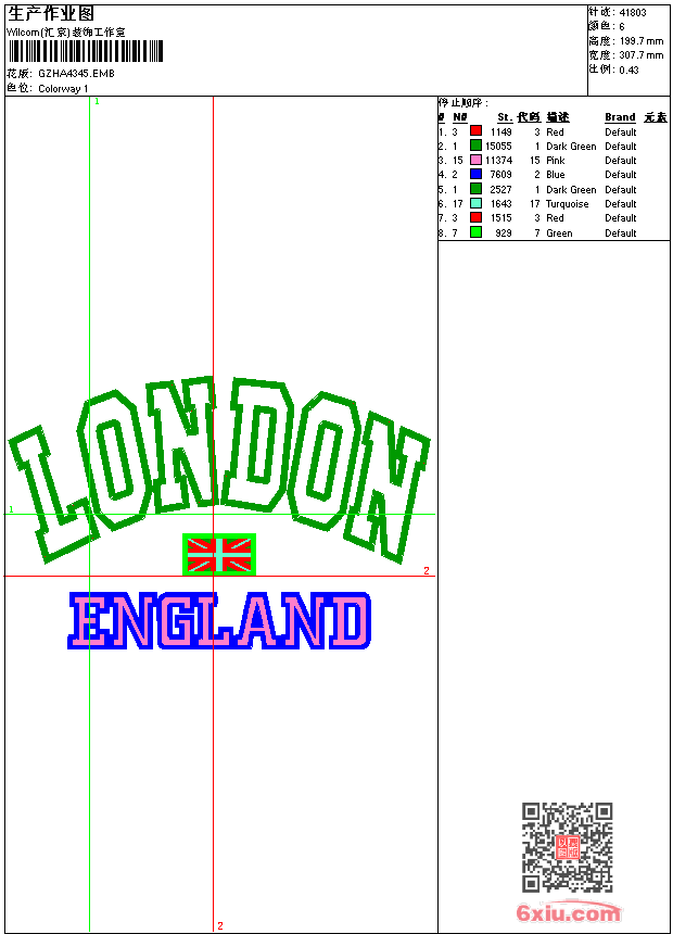 字母LONDON emb花版参数: 大小:111.50 KB / 尺寸:308*200[毫米] / 针数:41803针 / 线色:6 / 格式:emb / 版本:9 版带文件需绣花软件方可打开,可配色打印导出各种格式或直接上机绣。如无绣花软件可下载1:1模拟效果图。 PNG图片信息:大小:0.6(MB) /图宽*高:1164x756(像素) emb下载 1:1图下载 关闭 相关花版: 抽象乱针块 经典花衣领 熊卡通 兔卡通 字母 抽象条 简单花 裤袋 裤袋 简单花领 章仔 简单花 抽象曲线 抽象花裙 曲线花 五星裤袋 维尼熊卡通 简单花 圆形条 仿水溶领 亮片 珠片裙花 小包针条 单针START 传统花 网络花领 眼睛 仿水溶花 熊开汽车卡通 简单花 简单童花