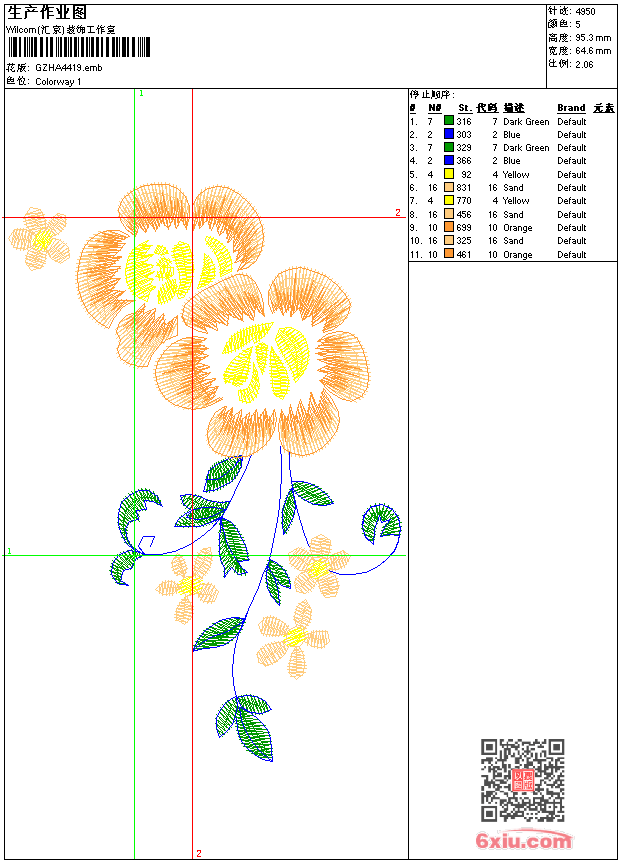 简单花 emb花版参数: 大小:60.00 KB / 尺寸:65*95[毫米] / 针数:4950针 / 线色:5 / 格式:emb / 版本:9 版带文件需绣花软件方可打开,可配色打印导出各种格式或直接上机绣。如无绣花软件可下载1:1模拟效果图。 PNG图片信息:大小:0.1(MB) /图宽*高:245x361(像素) emb下载 1:1图下载 关闭 相关花版: 单针抽象花 字母 字母style 传统玫瑰花 眼镜 字母ZE 亮片 几何锁针 锁边花 REVOLUTE 翅膀章仔 肩花简单 兔子动物 简单凤凰花 简单贴布领 绕绳花抽象 简单花 米粒花 狗狗骨头动物 抽象曲线条 抽象章仔 简单雕孔 简单花 简单花 骷髅 建筑铁塔 章仔 骷髅 翅膀章仔 点点花星 童衣 花领对称网格