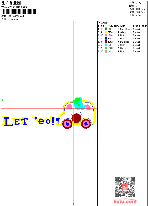 汽车贴布卡通 emb花版参数: 大小:51.00 KB / 尺寸:180*60[毫米] / 针数:7793针 / 线色:7 / 格式:emb / 版本:9 版带文件需绣花软件方可打开,可配色打印导出各种格式或直接上机绣。如无绣花软件可下载1:1模拟效果图。 PNG图片信息:大小:0.1(MB) /图宽*高:682x228(像素) emb下载 1:1图下载 关闭 相关花版: 经典花 简单花 狮子章仔 老鹰字母 字母 阿童木卡通 雕孔条花 兔子卡通 熊 镂空领 美女人物 贴布花 树叶 锁针花 传统牡丹花 镂空领抽象 抽象曲线 仿水溶花边圆 简单小花 抽象它它米 镂空圆裙 仿水溶馬甲多色花 镂空圆 曲线花 兔子简单花 字母OH MY GOD 绕绳领 男章仔 几何领 单针领