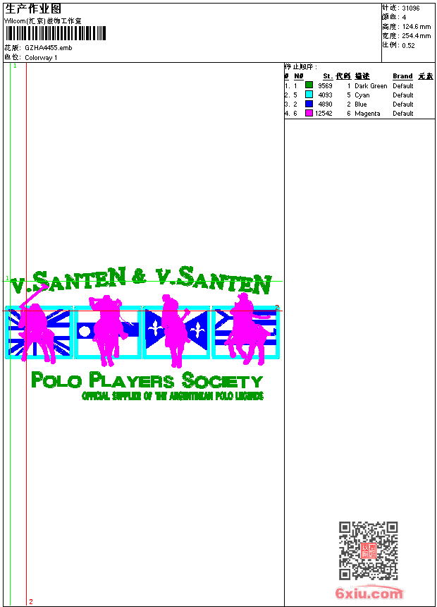 骑马polo emb花版参数: 大小:170.50 KB / 尺寸:254*125[毫米] / 针数:31096针 / 线色:4 / 格式:emb / 版本:9 版带文件需绣花软件方可打开,可配色打印导出各种格式或直接上机绣。如无绣花软件可下载1:1模拟效果图。 PNG图片信息:大小:0.5(MB) /图宽*高:963x472(像素) emb下载 1:1图下载 关闭 相关花版: 小鸭子卡通 传统花 传统花高 牛头 简单花贴布 简单花 骷髅 亮片 几何方块 章仔 有角大花对称 花三角形简单 爱是盲目的卡通 标志小曲线 抽象曲线条 皇冠 镂空抽象花条裙 裤袋 男抽象曲线 传统玫瑰花 皇冠 抽象人头 裙花大 抽象领 抽象美女人物 男人头 抽象领包针 章仔 多边形针抽象衣角 简单锁针领 抽象几何领