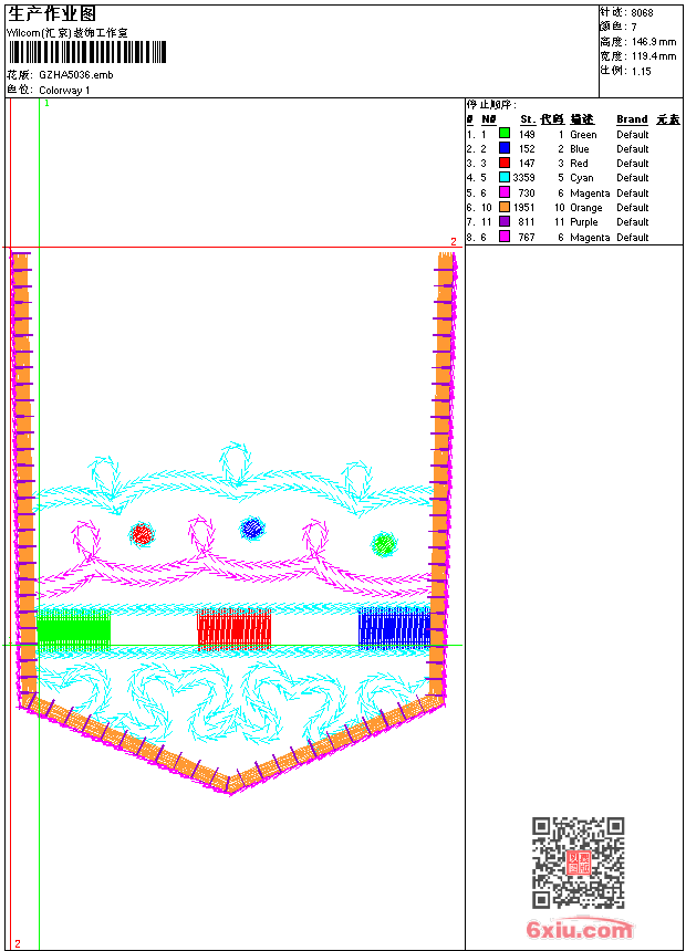 抽象裤袋 emb花版参数: 大小:108.50 KB / 尺寸:119*147[毫米] / 针数:8068针 / 线色:7 / 格式:emb / 版本:9 版带文件需绣花软件方可打开,可配色打印导出各种格式或直接上机绣。如无绣花软件可下载1:1模拟效果图。 PNG图片信息:大小:0.2(MB) /图宽*高:452x556(像素) emb下载 1:1图下载 关闭 相关花版: 家纺大花 狮子男 格子相间领 胸花仿水溶 圆边 它它米花 经典花裙 抽象花领绳绣 几何相间条 简单领 单针花衣边 经典花镂空裙衣边 马 抽象包针曲线条 抽象单针条 传统牡丹花 抽象曲线 简单裤腰 章仔 抽象圆十字绣条裙 十字绣条 抽象条带 小花排列裙 贴布抽象花领 狮子章仔 字母心 简单三角针花条 简单十字绣条 抽象曲线 抽象条领