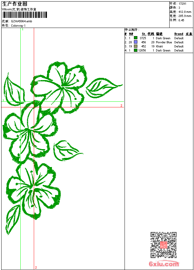 简单花 emb花版参数: 大小:92.50 KB / 尺寸:286*413[毫米] / 针数:17291针 / 线色:3 / 格式:emb / 版本:e1.5 版带文件需绣花软件方可打开,可配色打印导出各种格式或直接上机绣。如无绣花软件可下载1:1模拟效果图。 PNG图片信息:大小:0.7(MB) /图宽*高:1082x1562(像素) emb下载 1:1图下载 关闭 相关花版: 抽象包针 复杂花衣边裙条 狮子章仔 熊 米奇蝴蝶 小花排列 单针抽象条 尾巴抽象 插针花 女孩人物 家纺几何包针 凤凰包针 经典花条 家纺单针 单针花 简单花字母 经典花家纺裙 迪斯尼卡通 国旗 简单花 字母35 经典花领 铜钱花裙条 抽象圆 抽象裤袋 家纺大花 狮子男 格子相间领 胸花仿水溶 圆边