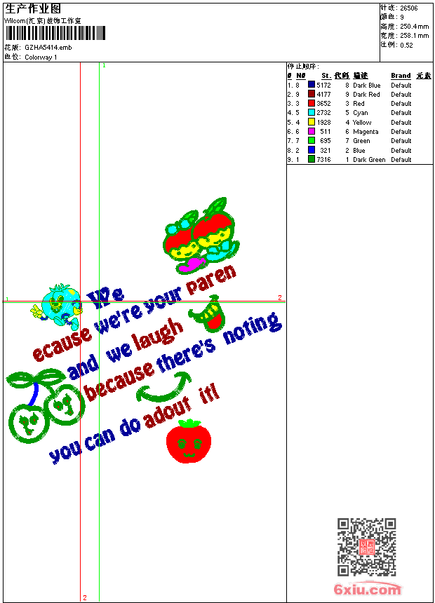 水果卡通 emb花版参数: 大小:162.00 KB / 尺寸:258*250[毫米] / 针数:26506针 / 线色:9 / 格式:emb / 版本:9 版带文件需绣花软件方可打开,可配色打印导出各种格式或直接上机绣。如无绣花软件可下载1:1模拟效果图。 PNG图片信息:大小:0.5(MB) /图宽*高:977x948(像素) emb下载 1:1图下载 关闭 相关花版: 象树 十字绣条 兔子卡通 单针牡丹花 猫贴布 锁针领 牡丹花 抽象曲线 不规则圆 马章仔 圆点裙边 仿水溶领玫瑰花 9毛巾绣 简单花领 抽象鹅 抽象男十字章 简单花 网格抽象花裙 仿水溶领 兔子花童卡通 维尼熊卡通 抽象圆菱形领 抽象花领 传统花 简单花裤 十字绣条方块 抽象鹅领 三角花简单童 简单 抽象领