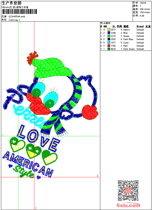 鸭子love american emb花版参数: 大小:103.50 KB / 尺寸:154*206[毫米] / 针数:19224针 / 线色:7 / 格式:emb / 版本:9 版带文件需绣花软件方可打开,可配色打印导出各种格式或直接上机绣。如无绣花软件可下载1:1模拟效果图。 PNG图片信息:大小:0.4(MB) /图宽*高:584x781(像素) emb下载 1:1图下载 关闭 相关花版: 抽象镂空包针曲线 松鼠 鞋 方格条领 小孩人物卡通 简单包针格子领 传统牡丹花 复杂传统花裙 单针花 美女人物 红唇 抽象菠萝 圆珠条领 网格单针叶大红花领 亮片 圆珠条 皇冠章仔 几何块 梯状抽象包针 乱针仿水溶花边 熊卡通 网格花裙 蜻蜓昆虫 同心花经典 抽象条裙 武士人物 三圆结合裙条 熊贴布 包针花领 X方块 包针花条