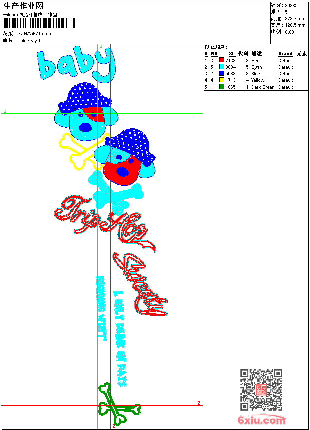 狗BABY卡通 emb花版参数: 大小:147.00 KB / 尺寸:128*373[毫米] / 针数:24265针 / 线色:5 / 格式:emb / 版本:9 版带文件需绣花软件方可打开,可配色打印导出各种格式或直接上机绣。如无绣花软件可下载1:1模拟效果图。 PNG图片信息:大小:0.4(MB) /图宽*高:486x1410(像素) emb下载 1:1图下载 收藏本图 关闭 相关花版: 简单花 狮子章仔 字母57 锚 抽象字母 字母EXPLORE 抽象花曲线 狮子 宝贝卡通 章仔 贝壳花 人像 亮片 珠片抽象中国结胸 传统玫瑰花 经典花 锁针曲线领 经典花 抽象花瓶 简单花 单针螺纹条 亮片 珠片包针裙条 单针花裙 十字绣花 童小花裙 海洋动物卡通 抽象腰花领 美女小章仔 字母coke 舵 兔子字母