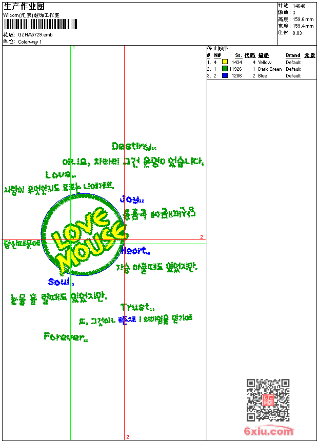 韩文字母love mouse emb花版参数: 大小:149.00 KB / 尺寸:159*160[毫米] / 针数:14648针 / 线色:3 / 格式:emb / 版本:9 版带文件需绣花软件方可打开,可配色打印导出各种格式或直接上机绣。如无绣花软件可下载1:1模拟效果图。 PNG图片信息:大小:0.2(MB) /图宽*高:603x604(像素) emb下载 1:1图下载 关闭 相关花版: 圆盘花 十字绣条抽象 抽象米老鼠 圆泡条 三角相间条 瓢虫 单针花 花条裙 简单花 桃点圆领 国旗 简单花领 梅花树流水针 玫瑰花领 米老鼠卡通 心形章仔 传统插针花 单针花裙条 单针牡丹贴布 骷髅 十字绣花 传统花它它米 狗女士 简单包针花 抽象领曲线花 简单花 简单花 简单玫瑰花条 抽象花领曲线 传统花