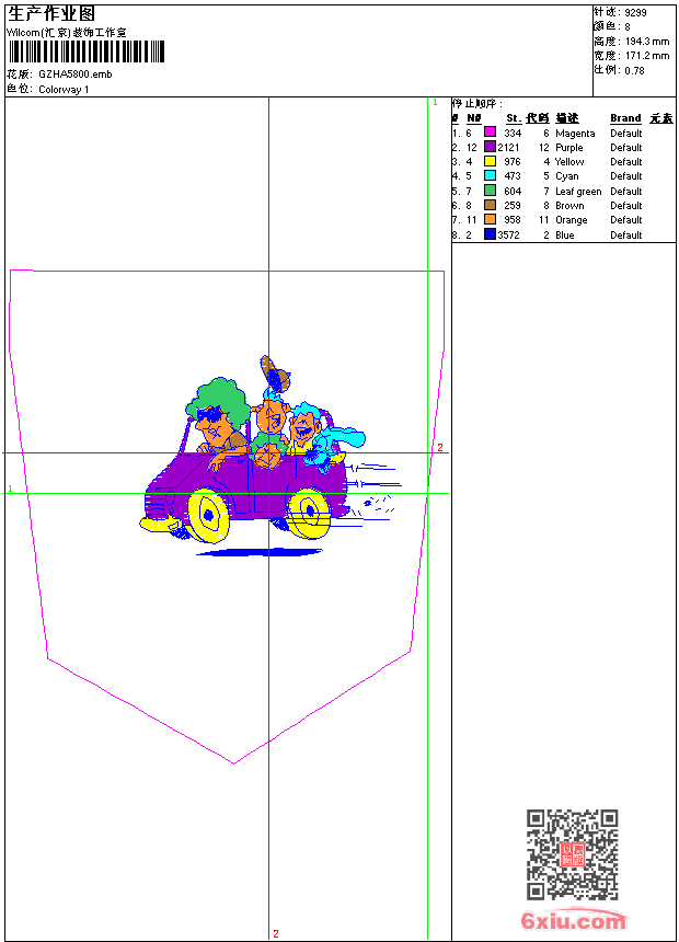 汽车卡通人物 emb花版参数: 大小:61.00 KB / 尺寸:171*194[毫米] / 针数:9299针 / 线色:8 / 格式:emb / 版本:9 版带文件需绣花软件方可打开,可配色打印导出各种格式或直接上机绣。如无绣花软件可下载1:1模拟效果图。 PNG图片信息:大小:0.2(MB) /图宽*高:648x735(像素) emb下载 1:1图下载 关闭 相关花版: 经典花 锚 菱形方块 人脸男 包针简单花领 小鸟 心形翅膀章仔 包针几何领 海马 LOOK 抽象放射圆环单针 简单裤袋 简单曲线 经典花衣角 几何菱形 亮片 蜂窝领 小孩裤袋 单针抽象仿心形 镂空条裙 包针曲线抽象 狗卡通 POLO保罗骑马 水滴花条 圆环条带 熊卡通 美女树下聊天凤凰 十字绣抽象条带 经典小花 经典小花 十字绣花经典