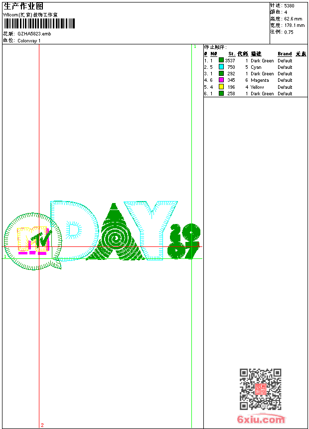 DAY字母 emb花版参数: 大小:45.50 KB / 尺寸:178*63[毫米] / 针数:5380针 / 线色:4 / 格式:emb / 版本:9 版带文件需绣花软件方可打开,可配色打印导出各种格式或直接上机绣。如无绣花软件可下载1:1模拟效果图。 PNG图片信息:大小:0.1(MB) /图宽*高:674x237(像素) emb下载 1:1图下载 关闭 相关花版: 简单领 兔子 YSL章仔 条形 经典花 狮子章仔 单针花条 抽象鱼样似凤凰条裙 简单小包针 雕孔叶抽象 优美曲线包针领 鹰章仔 经典抽象男曲线字母 简单花 简单领包针 似翅膀抽象杯 几何领包针 花心单针 大眼女生贴布 锁针花抽象 汽车卡通人物 经典花 锚 菱形方块 人脸男 包针简单花领 小鸟 心形翅膀章仔 包针几何领 海马