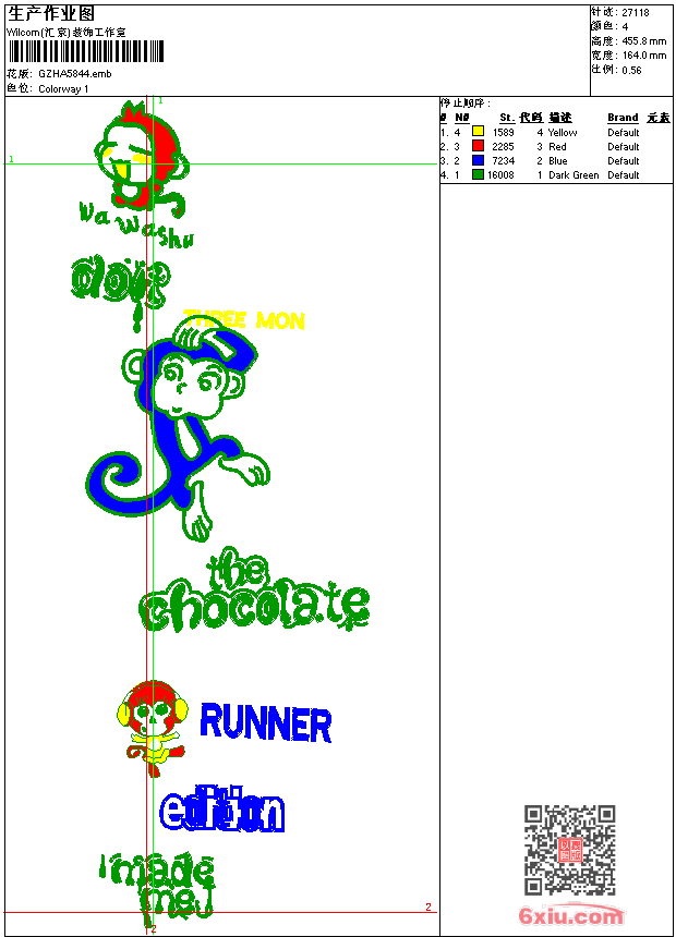 猴子动物 emb花版参数: 大小:170.50 KB / 尺寸:164*456[毫米] / 针数:27118针 / 线色:4 / 格式:emb / 版本:9 版带文件需绣花软件方可打开,可配色打印导出各种格式或直接上机绣。如无绣花软件可下载1:1模拟效果图。 PNG图片信息:大小:0.5(MB) /图宽*高:621x1725(像素) emb下载 1:1图下载 关闭 相关花版: 经典花叶裙 字母M 比基尼美女字母 抽象方形 网格针花童 无叶树抽象 溜狗女人 蚊香圈泡泡 狗牛卡通 包针曲线领 老鼠卡通 狮子章仔 单针叶裙花 简单包针 GOLF 仿花边抽象条衣裙 十字绣领 传统插针牡丹 经典玫瑰花 简单花 DAY字母 简单领 兔子 YSL章仔 条形 经典花 狮子章仔 单针花条 抽象鱼样似凤凰条裙 简单小包针