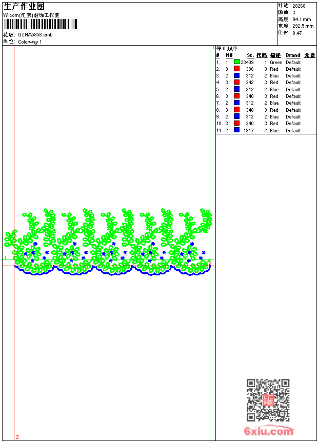 镂空裙花 emb花版参数: 大小:409.00 KB / 尺寸:292*94[毫米] / 针数:28268针 / 线色:3 / 格式:emb / 版本:9 版带文件需绣花软件方可打开,可配色打印导出各种格式或直接上机绣。如无绣花软件可下载1:1模拟效果图。 PNG图片信息:大小:0.4(MB) /图宽*高:1107x356(像素) emb下载 1:1图下载 关闭 相关花版: 小孩人物 灭蚊灯章仔 简单包针领 仿绳绣领 锦鲤鱼 单乱针领镂空 圆圈包针 兔子 鹰 蝎子 单针花童 包针优美曲线领 熊猫大侠 猴子动物 经典花叶裙 字母M 比基尼美女字母 抽象方形 网格针花童 无叶树抽象 溜狗女人 蚊香圈泡泡 狗牛卡通 包针曲线领 老鼠卡通 狮子章仔 单针叶裙花 简单包针 GOLF 仿花边抽象条衣裙