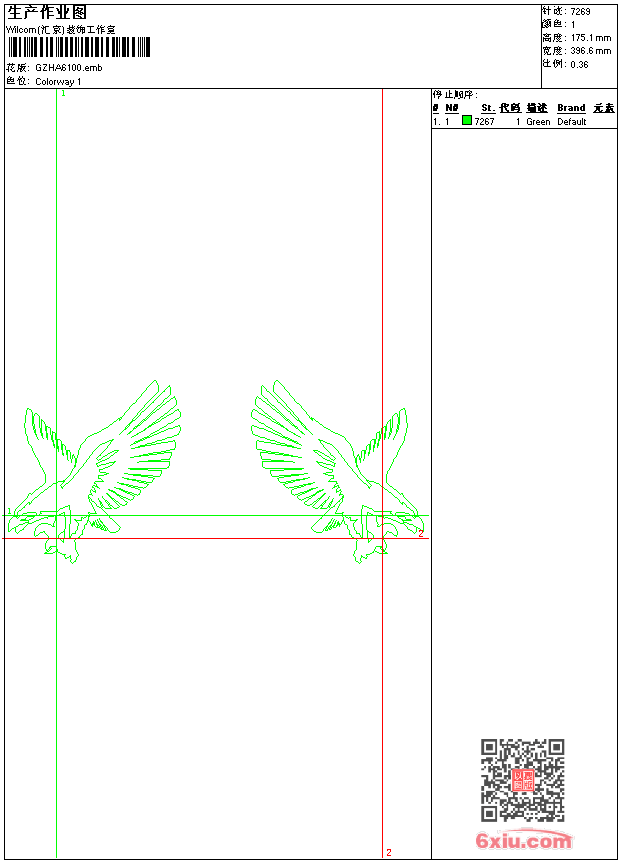 单针鹰 emb花版参数: 大小:29.50 KB / 尺寸:397*175[毫米] / 针数:7269针 / 线色:1 / 格式:emb / 版本:9 版带文件需绣花软件方可打开,可配色打印导出各种格式或直接上机绣。如无绣花软件可下载1:1模拟效果图。 PNG图片信息:大小:0.2(MB) /图宽*高:1500x663(像素) emb下载 1:1图下载 关闭 相关花版: 三角针抽象领 兔猫 兔 抽象小鸟领 皮带条 熊 它它米圆球波萝 铁链针花 似莲花 传统牡丹花 经典玫瑰花领 包针花条 抽象包针曲线 仿水溶花边 激光烧花领 简单花领 CHOPPERS 蝙蝠条领 鹰玫瑰花字母 经典包针玫瑰裙花 抽象孔雀传统 抽象包针裙镂空 仿水溶多色花领传统 指纹字母 菱形条块裙 吉祥抽象传统花 狗 仿水溶领抽象花 包针贴布曲线 抽象藤花包针