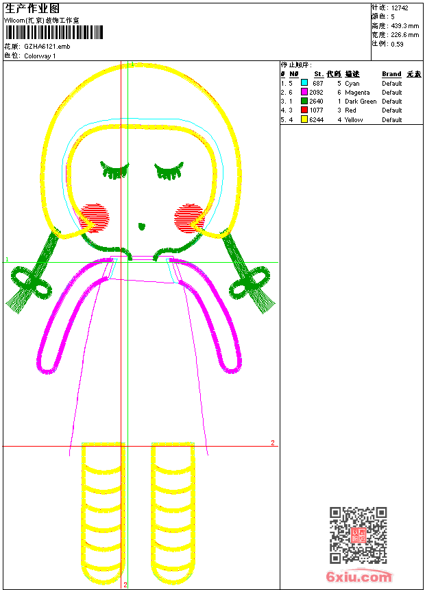 小女孩贴布 emb花版参数: 大小:72.50 KB / 尺寸:227*439[毫米] / 针数:12742针 / 线色:5 / 格式:emb / 版本:9 版带文件需绣花软件方可打开,可配色打印导出各种格式或直接上机绣。如无绣花软件可下载1:1模拟效果图。 PNG图片信息:大小:0.4(MB) /图宽*高:857x1662(像素) emb下载 1:1图下载 关闭 相关花版: 仿多色水溶领花 简笔鸟花凤凰 蜻蜓 鸳鸯戏水传统 抽象几何裙条复杂 风车叶花 希腊美女 抽象曲线胸 经典玫瑰花 狗熊 水滴花条裙 抽象曲线裙复杂 手提包 美女购物 海豚 亮片 珠片孔雀 十二生肖 兔 红唇口水 铜钱花 单针鹰 三角针抽象领 兔猫 兔 抽象小鸟领 皮带条 熊 它它米圆球波萝 铁链针花 似莲花 传统牡丹花