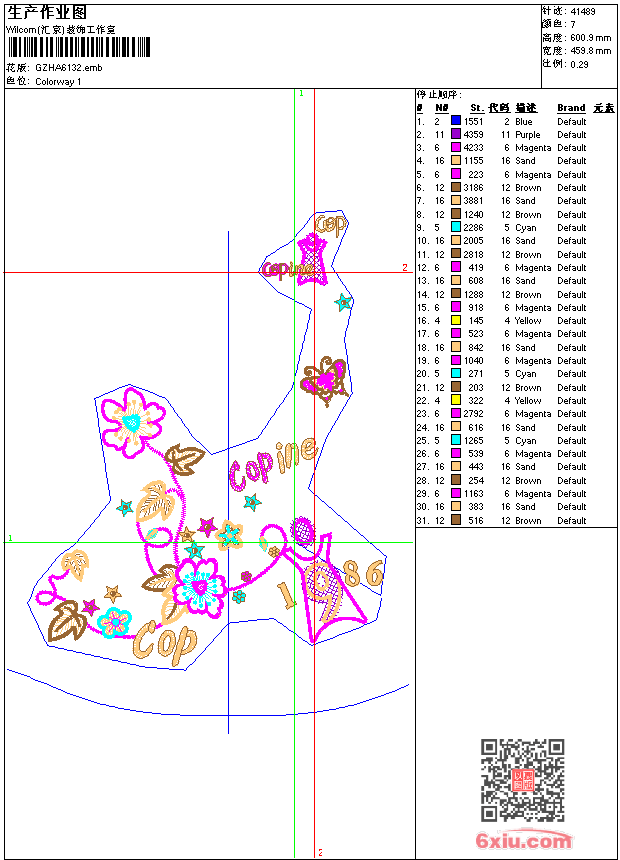 童装蝴蝶花 emb花版参数: 大小:320.50 KB / 尺寸:460*601[毫米] / 针数:41489针 / 线色:7 / 格式:emb / 版本:9 版带文件需绣花软件方可打开,可配色打印导出各种格式或直接上机绣。如无绣花软件可下载1:1模拟效果图。 PNG图片信息:大小:1.0(MB) /图宽*高:1740x2273(像素) emb下载 1:1图下载 关闭 相关花版: PUCCA 小女孩 水滴三角针 亮片 单笔凤凰 战国马车 古典抽象条皮带 亮片 珠片抽象 十字绣抽象葫芦花 小女孩 包针简单花 小女孩贴布 仿多色水溶领花 简笔鸟花凤凰 蜻蜓 鸳鸯戏水传统 抽象几何裙条复杂 风车叶花 希腊美女 抽象曲线胸 经典玫瑰花 狗熊 水滴花条裙 抽象曲线裙复杂 手提包 美女购物 海豚 亮片 珠片孔雀 十二生肖 兔 红唇口水 铜钱花 单针鹰