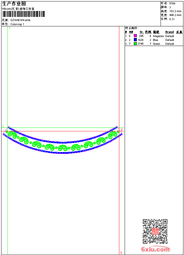 皮带花 emb花版参数: 大小:88.00 KB / 尺寸:449*103[毫米] / 针数:5768针 / 线色:3 / 格式:emb / 版本:9 版带文件需绣花软件方可打开,可配色打印导出各种格式或直接上机绣。如无绣花软件可下载1:1模拟效果图。 PNG图片信息:大小:0.3(MB) /图宽*高:1700x391(像素) emb下载 1:1图下载 收藏本图 关闭 相关花版: 独角兽马章仔 链目针领 简单叶花 插针牡丹花 章仔皇冠 亮片 花心单针包针枝 经典花 鹰章仔 它它米蝴蝶 简单插针花朵 狗尾巴草 亮片 珠片简单花 似孔雀尾巴包针花 狮子章仔 心形星条旗 抽象复杂胸领 抽象复杂胸领 包针花瓣 几何激光领 荷花 简单镂空花条 乱针花边 锚 三角针字母 童装蝴蝶花 PUCCA 小女孩 水滴三角针 亮片 单笔凤凰 战国马车 古典抽象条皮带