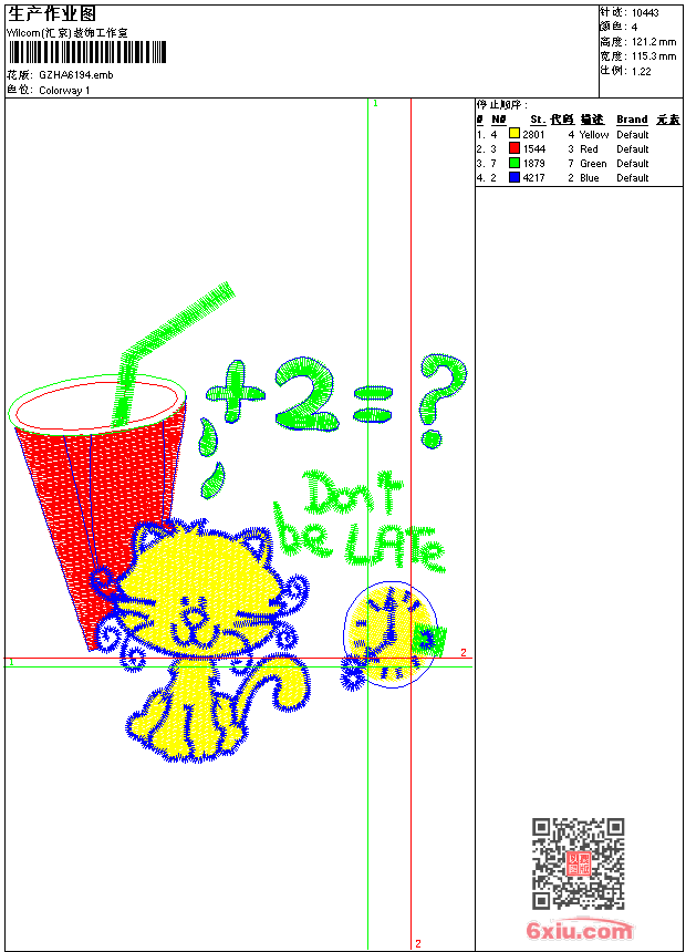 猫 emb花版参数: 大小:78.50 KB / 尺寸:115*121[毫米] / 针数:10443针 / 线色:4 / 格式:emb / 版本:9 版带文件需绣花软件方可打开,可配色打印导出各种格式或直接上机绣。如无绣花软件可下载1:1模拟效果图。 PNG图片信息:大小:0.2(MB) /图宽*高:437x459(像素) emb下载 1:1图下载 关闭 相关花版: 熊贴布 章仔1982 菱形条 adidas章仔 抽象翅膀花领 锁针抽象花 国旗裤袋 心形花 狗它它米 章仔 狗贴布 膺章仔 抽象压扁圆 猫 镂空几何领 卡通人物 雕孔花 包针镂空牡丹 抽象贴布鸟卡通 锚章仔 亮片 抽象花裙 经典花条 经典花 镂空对称花 皮带花 独角兽马章仔 链目针领 简单叶花 插针牡丹花 章仔皇冠