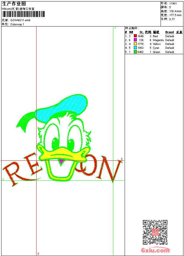 唐老鸭 emb花版参数: 大小:62.50 KB / 尺寸:178*136[毫米] / 针数:11901针 / 线色:5 / 格式:emb / 版本:9 版带文件需绣花软件方可打开,可配色打印导出各种格式或直接上机绣。如无绣花软件可下载1:1模拟效果图。 PNG图片信息:大小:0.2(MB) /图宽*高:672x517(像素) emb下载 1:1图下载 关闭 相关花版: 翅膀章仔 几何三角竖条 小花条圈裙 抽象领对称立体 包针简单花 梅花精品 网格玫瑰 小抽象条带 凤凰贴布 优美曲线花领 抽象眼睛条领 简单领 葡萄叶花裙 方格包针领 猫 熊贴布 章仔1982 菱形条 adidas章仔 抽象翅膀花领 锁针抽象花 国旗裤袋 心形花 狗它它米 章仔 狗贴布 膺章仔 抽象压扁圆 猫 镂空几何领