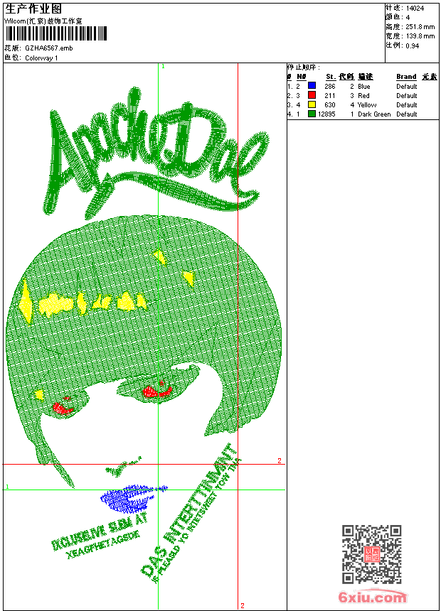 - 版带文件需绣花软件方可打开,可配色打印导出各种格式或直接上机绣。如无绣花软件可下载1:1模拟效果图。