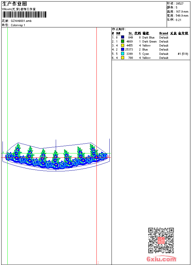 - emb花版参数: 大小:340.00 KB / 尺寸:550*168[毫米] / 针数:39527针 / 线色:5 / 格式:emb / 版本:2006
