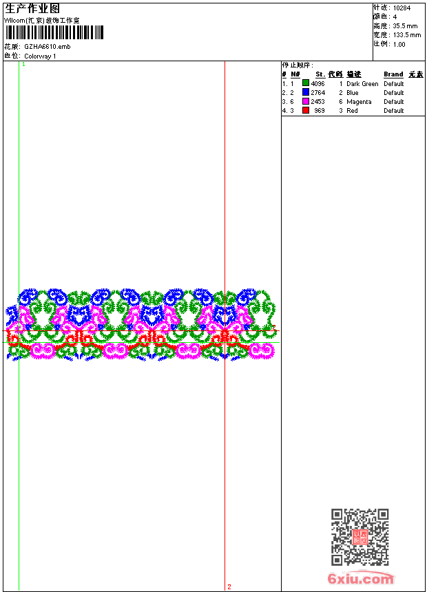- emb花版参数: 大小:38.50 KB / 尺寸:133*36[毫米] / 针数:10284针 / 线色:4 / 格式:emb / 版本:9