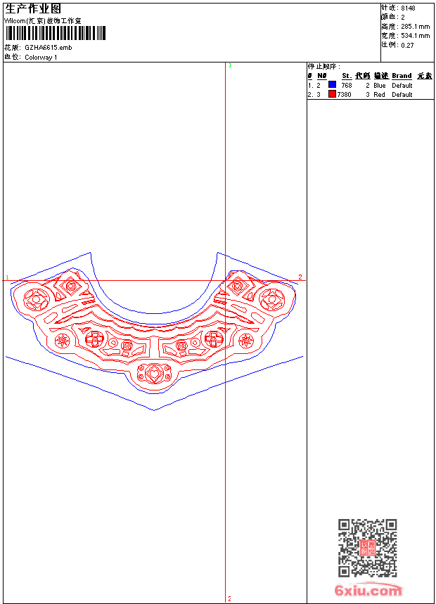 - emb花版参数: 大小:51.50 KB / 尺寸:534*285[毫米] / 针数:8148针 / 线色:2 / 格式:emb / 版本:9