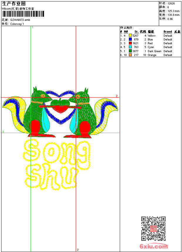 - 版带文件需绣花软件方可打开,可配色打印导出各种格式或直接上机绣。如无绣花软件可下载1:1模拟效果图。