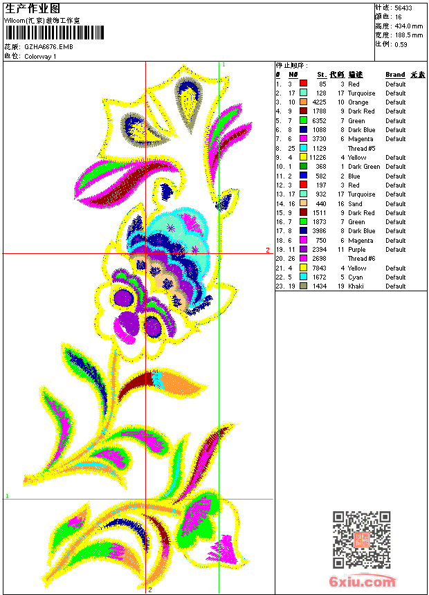 - emb花版参数: 大小:269.50 KB / 尺寸:189*434[毫米] / 针数:56433针 / 线色:16 / 格式:emb / 版本:9