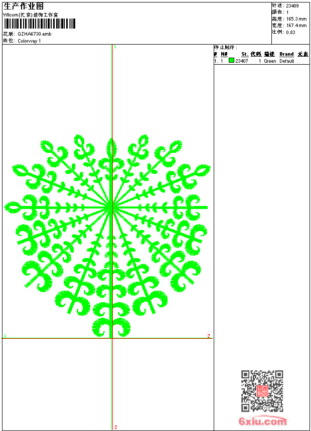 放射形勾状包针 emb花版参数: 大小:94.00 KB / 尺寸:167*165[毫米] / 针数:23409针 / 线色:1 / 格式:emb / 版本:9 版带文件需绣花软件方可打开,可配色打印导出各种格式或直接上机绣。如无绣花软件可下载1:1模拟效果图。 PNG图片信息:大小:0.3(MB) /图宽*高:634x626(像素) emb下载 1:1图下载 关闭 相关花版: 抽象龙 菱形曲线前领中 猫和狗贴布字母童 简单花 经典插针花 圆圈虚线条前中 单针线条抽象玫瑰花 后袋草 抽象曲线包针领 快餐标志 锁链圆圈拐角 经典花粗包针 狮子小标志 骷髅的心 狮子皇冠章仔 后袋时尚女郎 米妮贴布字母 山章仔 单针竖条花简单 单针花抽象 葡萄叶 猫脸 单针抽象对称经典方形 圆圈 唐老鸭 皇冠字母剑章仔 玫瑰花贴布 报喜鸟曲线 传统吉祥窗花 锁链针曲线字母