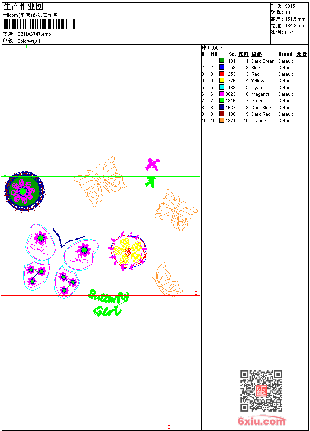 - emb花版参数: 大小:61.50 KB / 尺寸:184*152[毫米] / 针数:9815针 / 线色:10 / 格式:emb / 版本:9