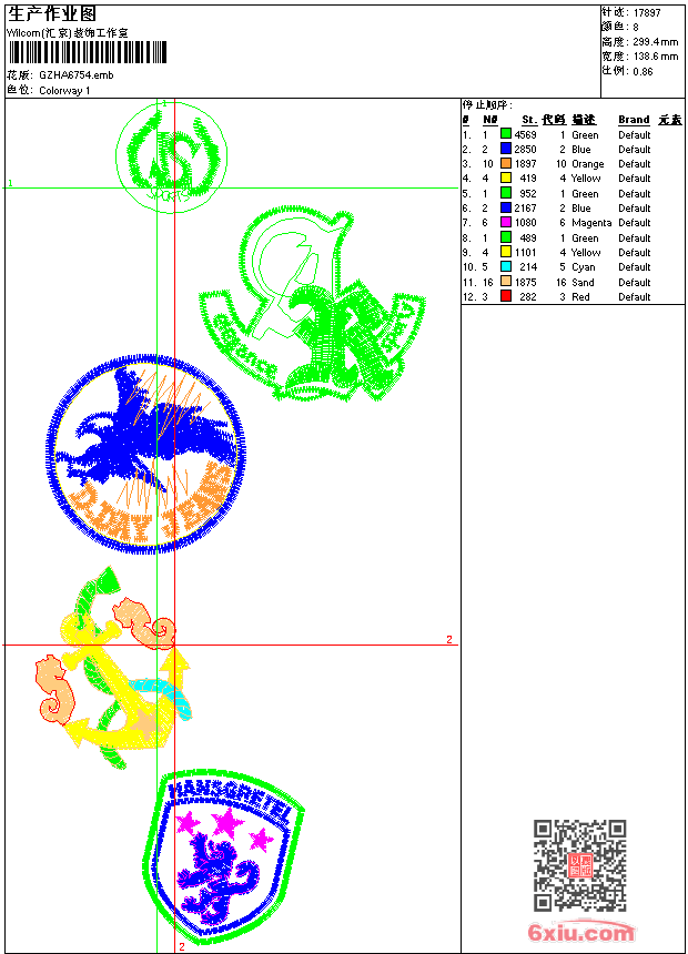 - 版带文件需绣花软件方可打开,可配色打印导出各种格式或直接上机绣。如无绣花软件可下载1:1模拟效果图。