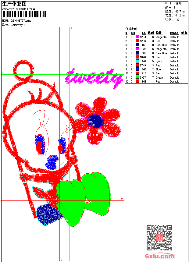 - 版带文件需绣花软件方可打开,可配色打印导出各种格式或直接上机绣。如无绣花软件可下载1:1模拟效果图。