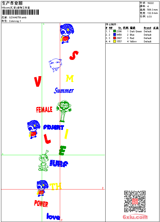 - emb花版参数: 大小:132.00 KB / 尺寸:133*509[毫米] / 针数:16222针 / 线色:4 / 格式:emb / 版本:9