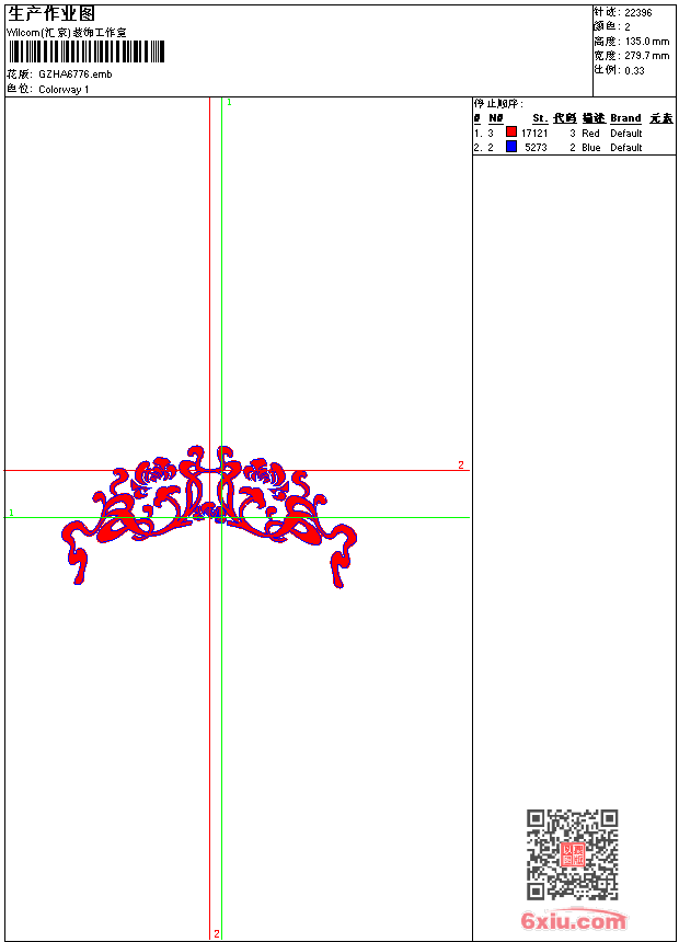 - emb花版参数: 大小:99.00 KB / 尺寸:280*135[毫米] / 针数:22396针 / 线色:2 / 格式:emb / 版本:9