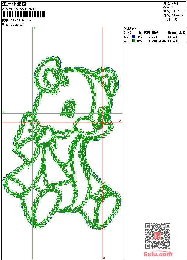 - 版带文件需绣花软件方可打开,可配色打印导出各种格式或直接上机绣。如无绣花软件可下载1:1模拟效果图。