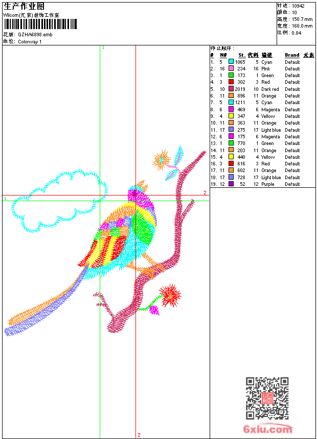 - 版带文件需绣花软件方可打开,可配色打印导出各种格式或直接上机绣。如无绣花软件可下载1:1模拟效果图。