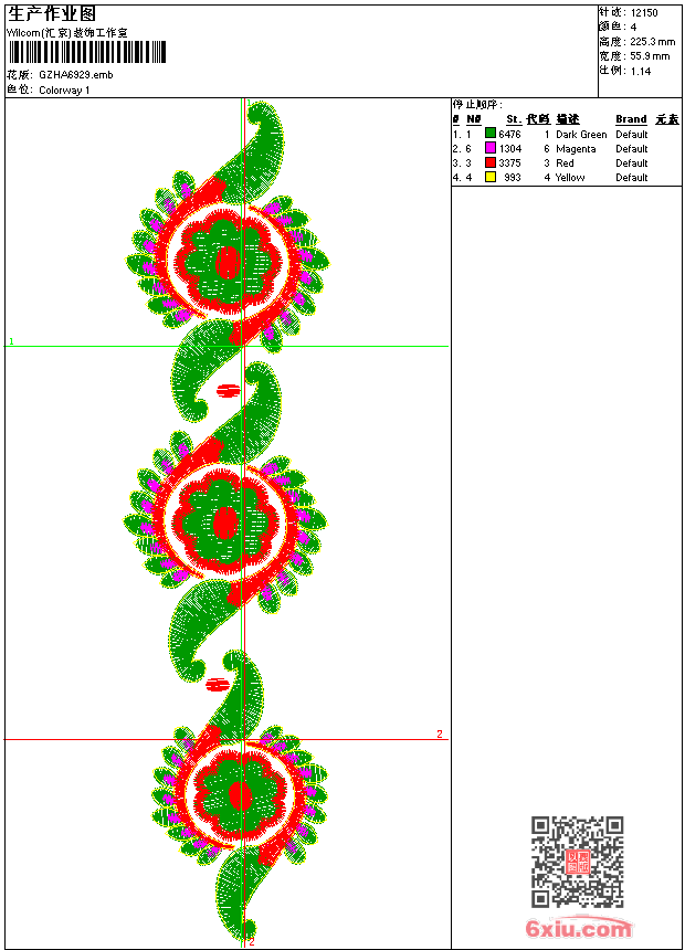 - emb花版参数: 大小:67.50 KB / 尺寸:56*225[毫米] / 针数:12150针 / 线色:4 / 格式:emb / 版本:9