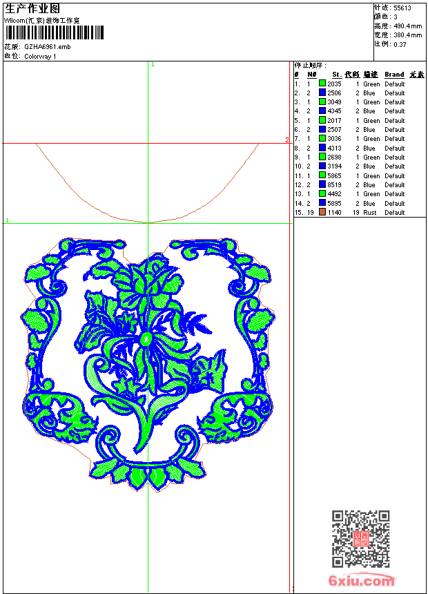 - emb花版参数: 大小:1.00 MB / 尺寸:380*490[毫米] / 针数:55613针 / 线色:3 / 格式:emb / 版本:7