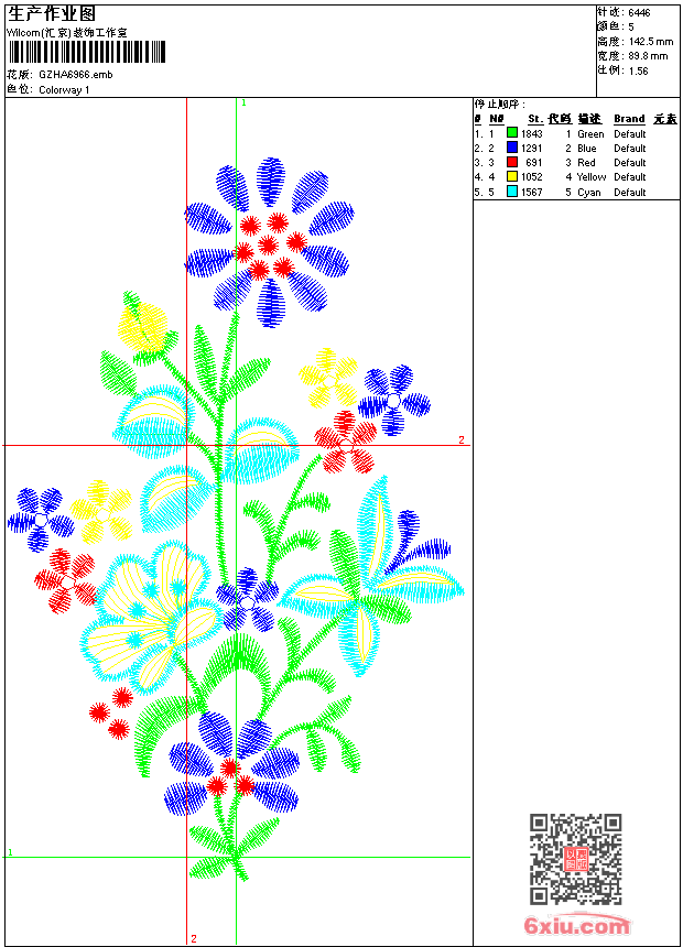 - emb花版参数: 大小:59.00 KB / 尺寸:90*142[毫米] / 针数:6446针 / 线色:5 / 格式:emb / 版本:9