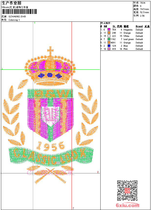 - emb花版参数: 大小:626.00 KB / 尺寸:53*74[毫米] / 针数:7034针 / 线色:6 / 格式:emb / 版本:7