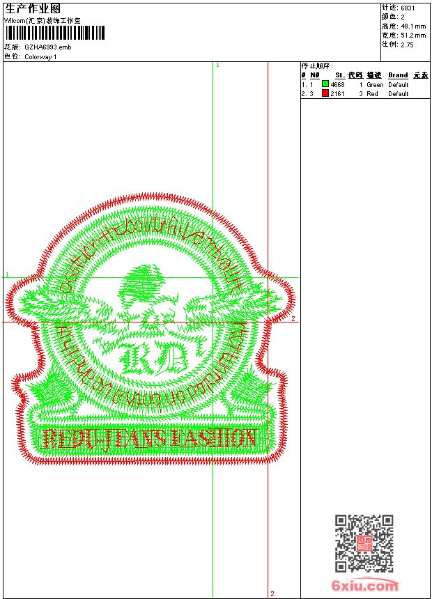 - emb花版参数: 大小:72.50 KB / 尺寸:51*48[毫米] / 针数:6831针 / 线色:2 / 格式:emb / 版本:9
