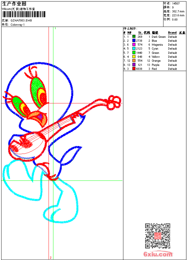 - 版带文件需绣花软件方可打开,可配色打印导出各种格式或直接上机绣。如无绣花软件可下载1:1模拟效果图。