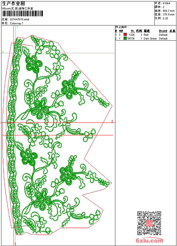 抽象锁链针下摆花 emb花版参数: 大小:1014.00 KB / 尺寸:371*669[毫米] / 针数:61064针 / 线色:2 / 格式:emb / 版本:2006 版带文件需绣花软件方可打开,可配色打印导出各种格式或直接上机绣。如无绣花软件可下载1:1模拟效果图。 PNG图片信息:大小:1.8(MB) /图宽*高:1403x2530(像素) emb下载 1:1图下载 关闭 相关花版: 贴布花 镂空圆点叶子家纺 简单小花条 抽象梯形前领中东复杂 简单小花叶 波浪镂空 小鸭弹吉他 贴布蝴蝶 简单三角针男 圆圈曲线叶子下摆 多色水溶领 米老鼠 曲线周线针下摆大裙花 简单贴布花 翅膀字母章仔 小熊玫瑰花推车 仿水溶花前中 三角针袖子 曲线波浪似蝴蝶前中简洁 亮片 拼珠仿十字绣树条 镂空不规则圆 骑马 雕孔单针波浪条家纺 皇冠字母章仔 小狗字母 亮片 瓜状叶子珠片后幅 圆圈抽象曲线对称前中 戴眼镜的小女孩字母 传统牡丹花 云状经典玫瑰花