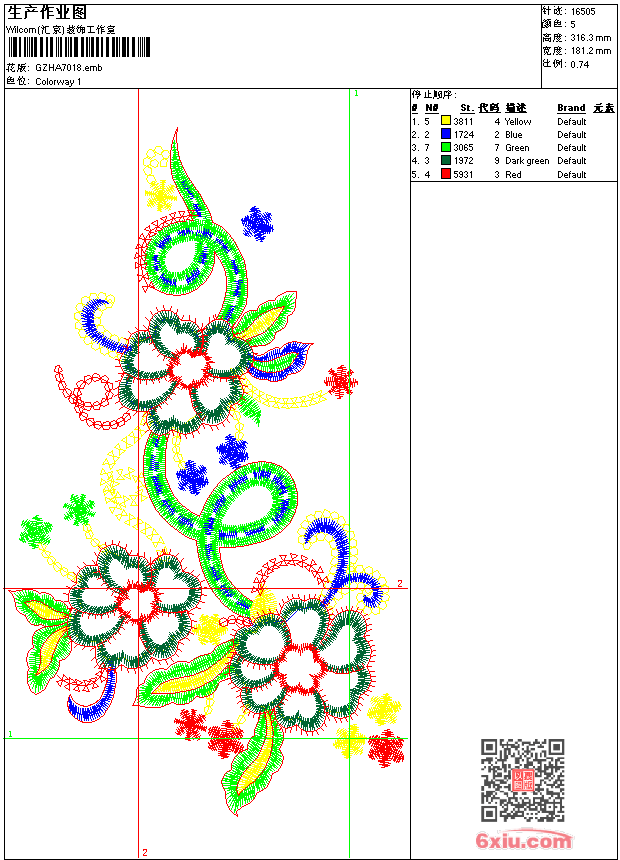 - emb花版参数: 大小:162.50 KB / 尺寸:181*316[毫米] / 针数:16505针 / 线色:5 / 格式:emb / 版本:e1.5