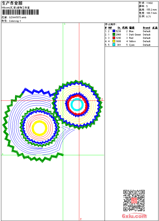 单针圆圈菱角抽象齿轮 emb花版参数: 大小:60.00 KB / 尺寸:189*155[毫米] / 针数:11432针 / 线色:5 / 格式:emb / 版本:9 版带文件需绣花软件方可打开,可配色打印导出各种格式或直接上机绣。如无绣花软件可下载1:1模拟效果图。 PNG图片信息:大小:0.3(MB) /图宽*高:714x588(像素) emb下载 1:1图下载 关闭 相关花版: 太阳花 前幅领荷叶花 彩虹花朵 米奇 女孩 猫女曲线单针 抽象水草花 雕孔窗帘 简单领 简单花条 仿绳绣曲线 下摆镂空裙花复杂 简单花 门襟接花 吊篮后幅下摆袖子条 网布匹绣 简单花领 简笔画街房子树 孔雀抽象 玫瑰花 心形抽象章仔复杂 仿绳绣花 梯形牡丹花 字母fruit 藤条 前幅领花 贴布绵羊 单针简单花 狮子 米字链状领前中