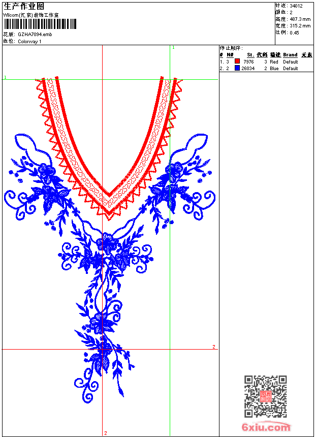 经典领花前中 emb花版参数: 大小:243.00 KB / 尺寸:315*487[毫米] / 针数:34012针 / 线色:2 / 格式:emb / 版本:9 版带文件需绣花软件方可打开,可配色打印导出各种格式或直接上机绣。如无绣花软件可下载1:1模拟效果图。 PNG图片信息:大小:0.9(MB) /图宽*高:1193x1844(像素) emb下载 1:1图下载 关闭 相关花版: 猫咪字母 抽象花条 兔女 曲线单针领 十二生肖 玫瑰花 飘带蝴蝶 简单对称花 镂空圆点方形条 简单小花 抽象蝴蝶前中 皇冠麦穗章仔 多色仿水溶领花 皇冠章仔 水溶袖子 曲线锯齿条 雕孔下摆裙花 传统牡丹花 单针圆圈菱角抽象齿轮 太阳花 前幅领荷叶花 彩虹花朵 米奇 女孩 猫女曲线单针 抽象水草花 雕孔窗帘 简单领 简单花条 仿绳绣曲线