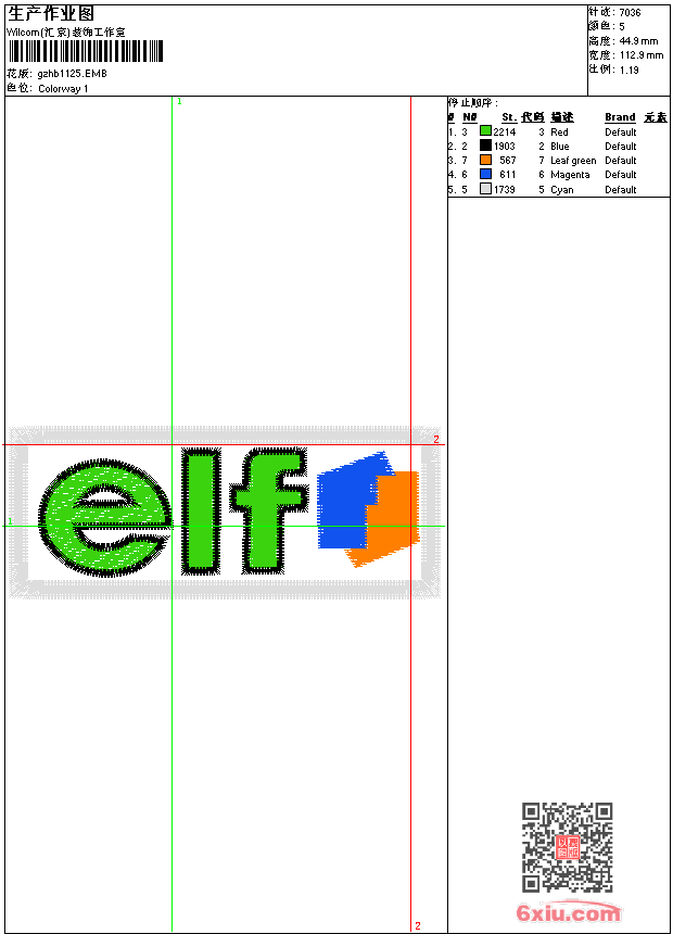 ELF商标 emb花版参数: 大小:37.50 KB / 尺寸:113*45[毫米] / 针数:7036针 / 线色:5 / 格式:emb / 版本:9 版带文件需绣花软件方可打开,可配色打印导出各种格式或直接上机绣。如无绣花软件可下载1:1模拟效果图。 PNG图片信息:大小:0.1(MB) /图宽*高:427x170(像素) emb下载 1:1图下载 关闭 相关花版: 毛巾绣章仔 体操卡通 数字章仔 burberry骑马保罗 锚 FBK 万宇卡通 禾穗章仔 警徽章仔 盾形章仔 Y章仔 传统波浪下摆分码大裙花复杂 抽象花条 抽象圆点前领中东 门襟衣角 抽象曲线豹子头 人头像 星星圆点它它米 字母V 网布花边 简单花 后袋小熊 斑点小狗 亮片 珠片领 简单花 似凤凰尾抽象曲线 童下摆花 骷髅 米老鼠 传统曲线抽象窗帘