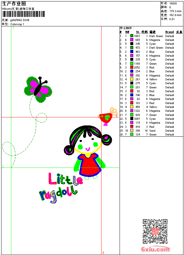 小女孩 emb花版参数: 大小:126.00 KB / 尺寸:163*179[毫米] / 针数:16828针 / 线色:8 / 格式:emb / 版本:9 版带文件需绣花软件方可打开,可配色打印导出各种格式或直接上机绣。如无绣花软件可下载1:1模拟效果图。 PNG图片信息:大小:0.2(MB) /图宽*高:616x679(像素) emb下载 1:1图下载 关闭 相关花版: 经典它它米玫瑰花 传统牡丹花 兔 花花公子 鹰 手提袋 绳绣绳绣 吉祥凤凰鱼传统 传统牡丹花 锁针抽象领条 抽象叶 圆形章仔 棉花标签 XL章仔 抽象曲线 小标签 圆章仔 马章仔ferrari法拉利 骷髅派队 王冠 骷髅 熊 ELF商标 毛巾绣章仔 体操卡通 数字章仔 burberry骑马保罗 锚 FBK 万宇卡通 禾穗章仔