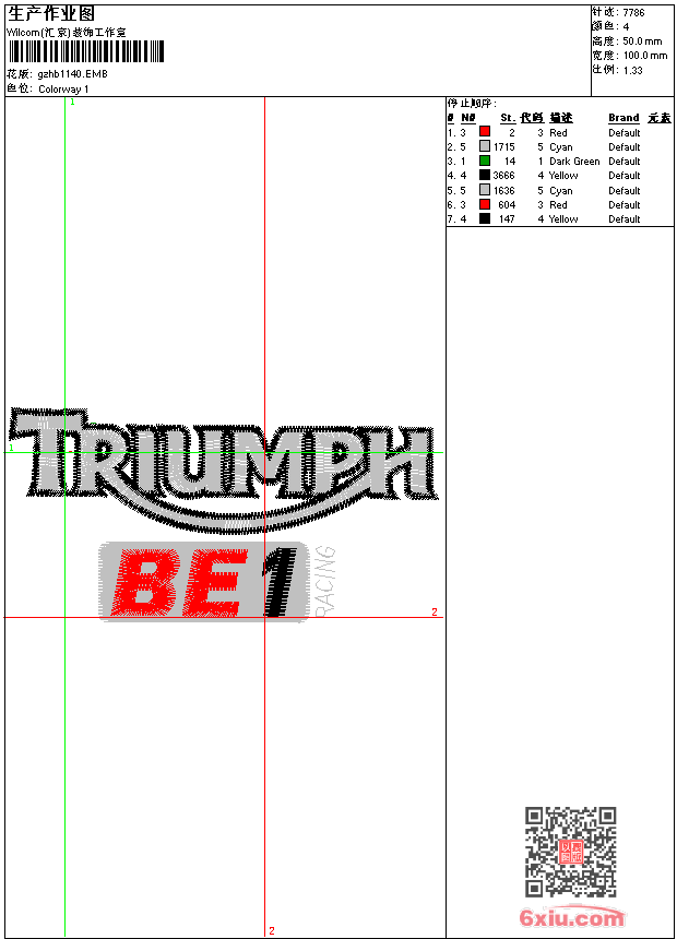 triumph emb花版参数: 大小:50.00 KB / 尺寸:100*50[毫米] / 针数:7786针 / 线色:4 / 格式:emb / 版本:9 版带文件需绣花软件方可打开,可配色打印导出各种格式或直接上机绣。如无绣花软件可下载1:1模拟效果图。 PNG图片信息:大小:0.1(MB) /图宽*高:379x190(像素) emb下载 1:1图下载 收藏本图 关闭 相关花版: 锚 骷髅 传统玫瑰花 burberry骑马 简单贴布花 字母集 水溶网布多色花 雕孔领条 经典牡丹花下摆裙 传统圆牡丹花 龙 菊花条家纺 古典领条 水溶假领条 镂空网布前中领 人梯人物 三角针豆芽 水溶肩 小屋 单针花组合条 单针抽象花条 小女孩 经典它它米玫瑰花 传统牡丹花 兔 花花公子 鹰 手提袋 绳绣绳绣 吉祥凤凰鱼传统 传统牡丹花