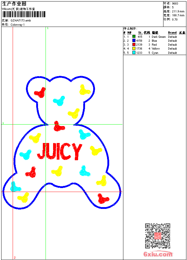 熊贴布 emb花版参数: 大小:63.50 KB / 尺寸:189*212[毫米] / 针数:9683针 / 线色:5 / 格式:emb / 版本:9 版带文件需绣花软件方可打开,可配色打印导出各种格式或直接上机绣。如无绣花软件可下载1:1模拟效果图。 PNG图片信息:大小:0.2(MB) /图宽*高:714x802(像素) emb下载 1:1图下载 关闭 相关花版: 心形 骑马章仔 骑马章仔 圆章仔 圆章仔 字母 翅膀阴阳脸章仔 pow wear jeans 翅膀章仔 箭形章仔 齿轮章仔 盾形章仔 独角兽章仔 圆章仔 狮子 伞 圆章仔 章仔 鹰章仔 霹雳娇娃 triumph 锚 骷髅 传统玫瑰花 burberry骑马 简单贴布花 字母集 水溶网布多色花 雕孔领条