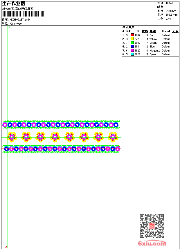 圆圈花朵条码 emb花版参数: 大小:54.00 KB / 尺寸:306*84[毫米] / 针数:18041针 / 线色:6 / 格式:emb / 版本:e1.5 版带文件需绣花软件方可打开,可配色打印导出各种格式或直接上机绣。如无绣花软件可下载1:1模拟效果图。 PNG图片信息:大小:0.4(MB) /图宽*高:1156x318(像素) emb下载 1:1图下载 关闭 相关花版: 单针轮廓花 旋转单针叶子抽象 小熊开汽车 蝴蝶 后袋水草抽象 简单花 三角形抽象乱针 简单花 抽象单针叶 前中对称领花仿水溶 后袋鸵鸟 米奇和哈巴狗 曲线仿绳绣 金鱼水草花传统吉祥 兔子 字母章仔next day 过圣诞的小熊 鱼吉祥传统花 黑白狗 领网格吊坠中东 字母 镂空前中领 抽象花 几何组合 鸭 简单花 抽象裙摆边条曲线 网格贴布花 大嘴猴 抽象线条